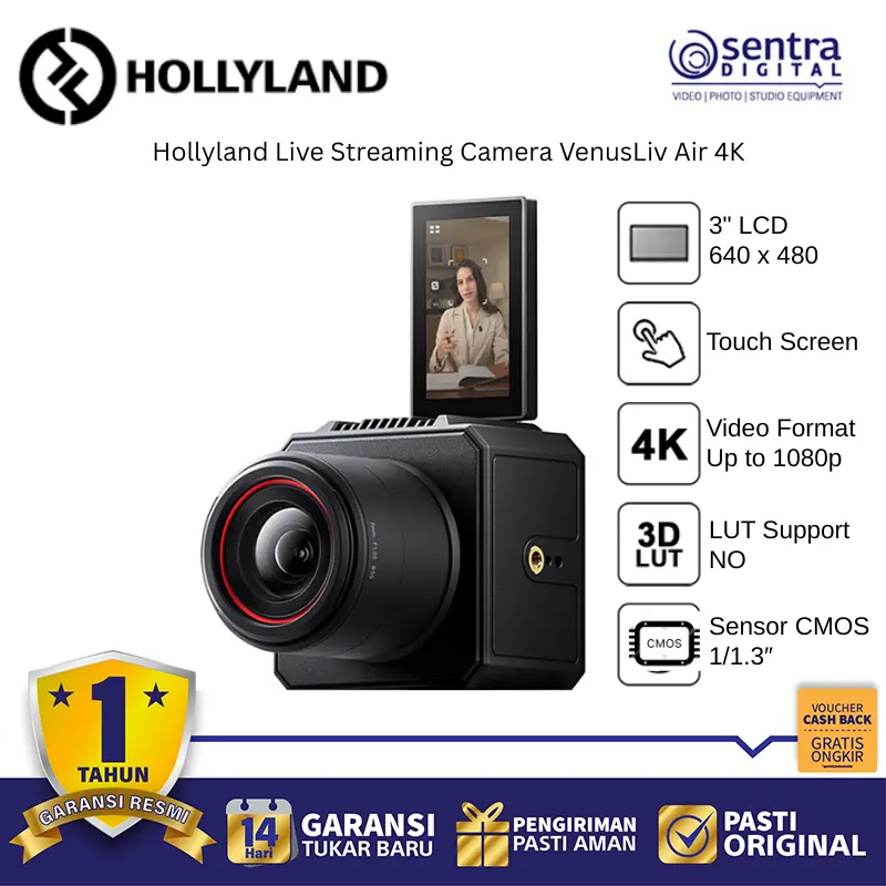 Hollyland VenusLiv Air 4K adalah kamera live streaming profesional yang dirancang untuk konten kreator, podcaster, dan penyiar digital. Dengan resolusi 4K ultra HD, fitur auto framing, dan konektivitas HDMI, USB, serta wireless, kamera ini memberikan kualitas siaran yang tajam dan fleksibel. Cocok untuk YouTube, Zoom, OBS, dan platform streaming lainnya.