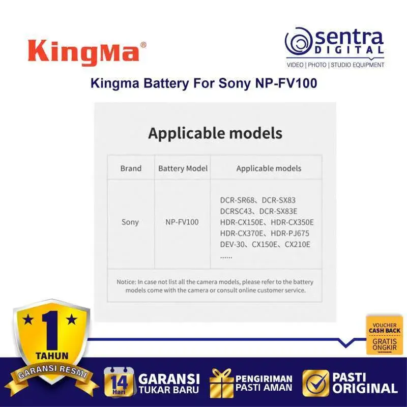 Upgrade your Sony Handycam with the Kingma NP-FV100 3090mAh battery. Designed for extended shooting sessions, this high-capacity lithium-ion battery offers reliable performance and full compatibility with Sony NP-FV series camcorders. Ideal for travel, vlogging, and professional video production.
