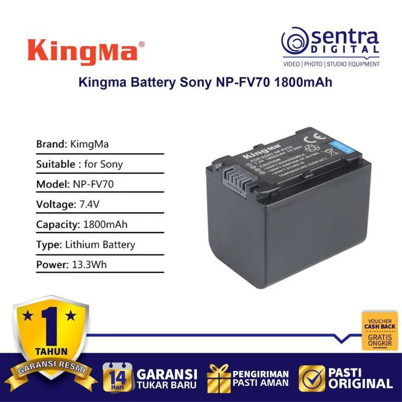 Power your Sony Handycam with the Kingma NP-FV70 2060mAh battery. This high-capacity lithium-ion battery offers reliable performance and full compatibility with Sony NP-FV series camcorders. Perfect for travel, vlogging, and extended video shoots.