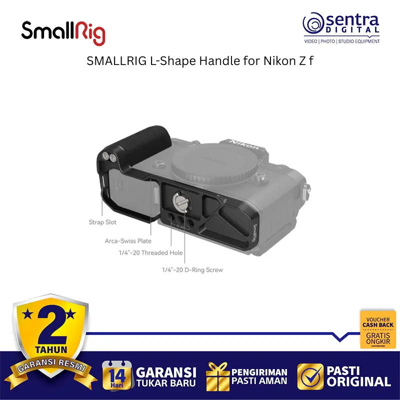 Siap untuk meningkatkan pengalaman memotret Anda, Smallrig L-Shaped Grip adalah aksesori kecil namun penting yang dirancang khusus untuk kamera mirrorless Nikon Zf. Pasangkan di bagian bawah kamera Anda dengan sekrup 1/4"-20 untuk meningkatkan ergonomi dan menambahkan titik pemasangan untuk tripod Anda dengan dovetail tipe Arca yang terintegrasi. Pegangan ini memberikan akses penuh ke baterai kamera dan port kartu memori. Pegangan ini memiliki permukaan bertekstur antiselip yang terintegrasi dengan mulus dengan Zf.