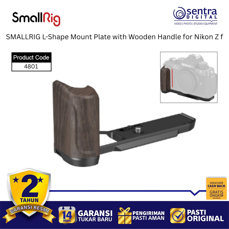 Siap menyempurnakan pengalaman memotret Anda, L-Shape Mounting Plate with Wood Grip dari SmallRig adalah aksesori kecil yang dirancang khusus untuk kamera mirrorless Nikon Zf. Pelat ini terpasang di bagian bawah bodi melalui sekrup D-ring 1/4"-20, meningkatkan ergonomi sekaligus menyediakan titik pemasangan untuk tripod Anda dengan alas terintegrasi tipe Arca.