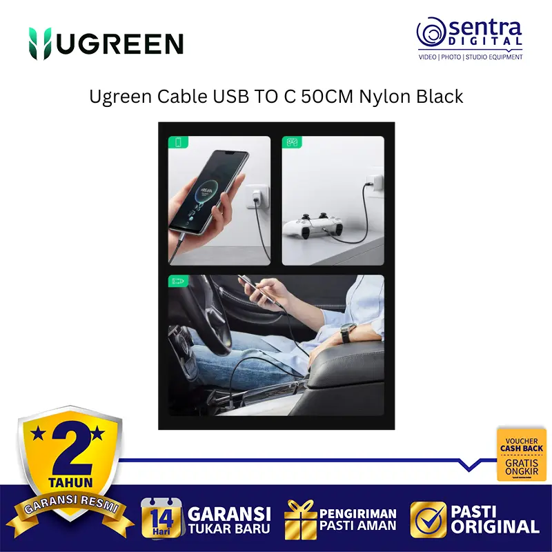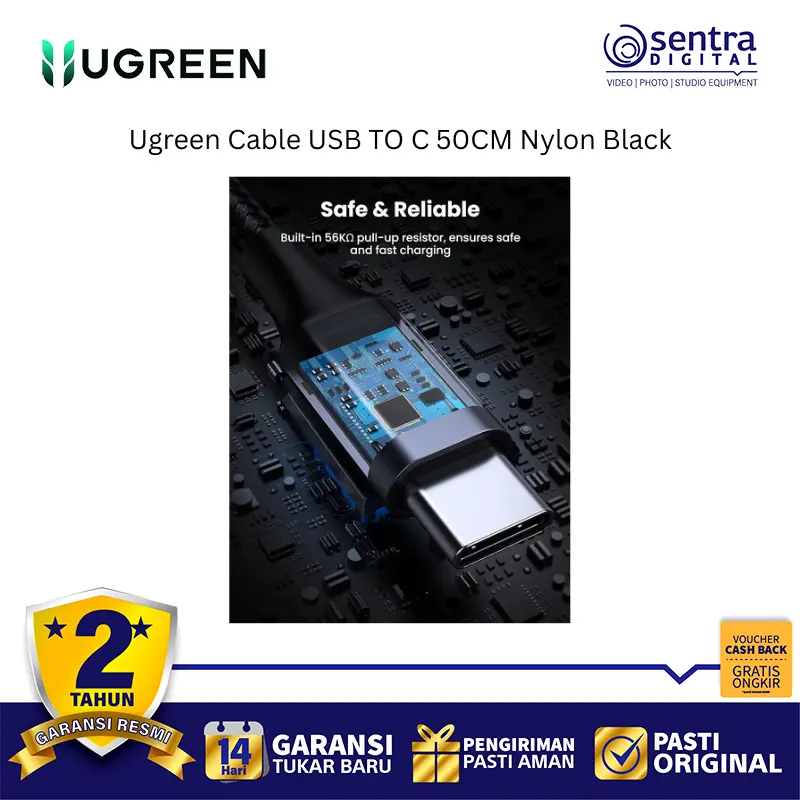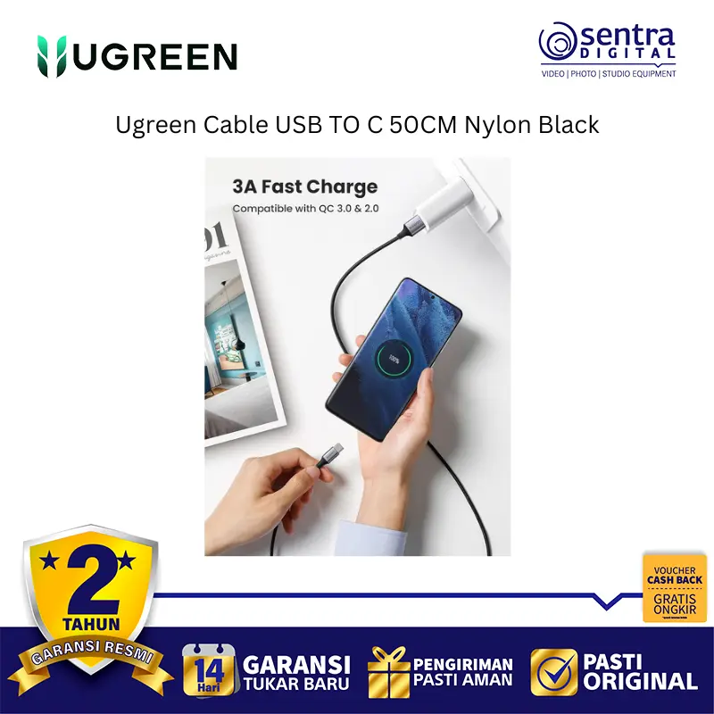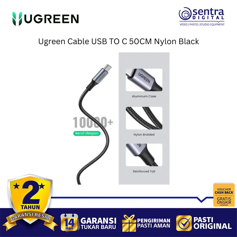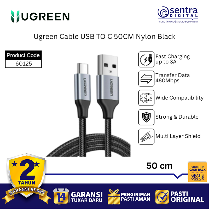 Ugreen Cable USB TO C 50CM Nylon Black (60125) adalah kabel data dan pengisian daya dari USB Type-A ke USB Type-C dengan panjang 50 cm yang ringkas. Dirancang untuk daya tahan ekstra, kabel ini dibungkus dengan lapisan Nylon Braided (rajutan nilon) yang membuatnya lebih kuat, anti-kusut, dan tahan terhadap tekukan. Ideal untuk penggunaan di mana pun Anda membutuhkan kabel pendek, seperti untuk power bank atau menghubungkan ke laptop.