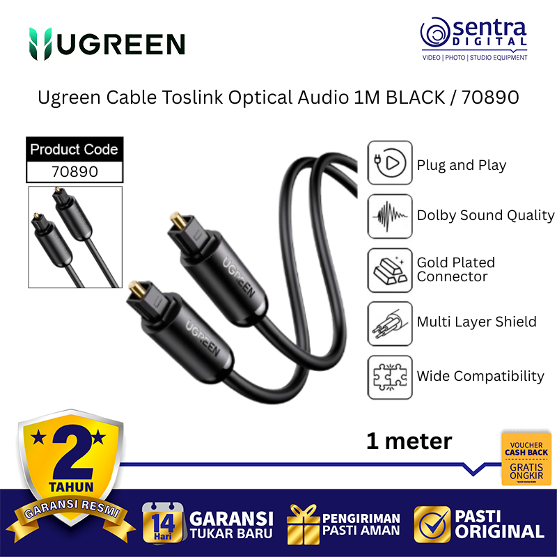 Kabel ini umumnya digunakan untuk menghubungkan perangkat audio digital seperti TV, soundbar, konsol game (PS4/Xbox), pemutar Blu-ray, atau receiver audio ke sistem home theater atau amplifier. Dengan konstruksi yang kokoh, kabel Toslink Ugreen menawarkan koneksi audio yang andal dan berkualitas tinggi.