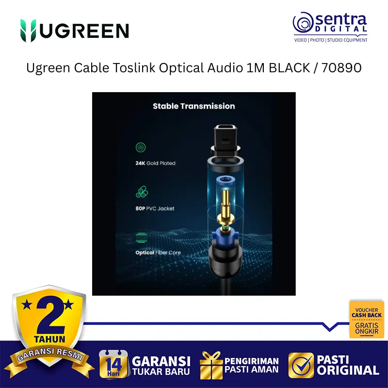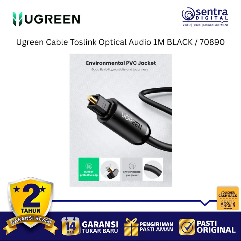 Kabel Ugreen Toslink Optical Audio (70890) adalah kabel yang berfungsi untuk mentransfer sinyal audio digital murni menggunakan teknologi serat optik.