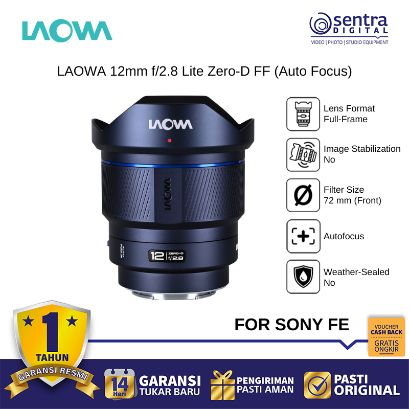 Terintegrasi mulus dengan sistem kamera mirrorless Sony E-mount dan dukungan autofokus, Laowa 12mm f/2.8 Lite memiliki desain ringkas dan ringan yang memudahkan Anda membawa kamera. Apertur maksimum f/2.8 menghasilkan bokeh yang memukau di area yang kurang fokus, sementara apertur minimum f/22 memaksimalkan detail, menangkap pemandangan dengan akurasi yang realistis.