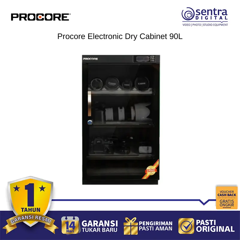 Procore Electronic Dry Cabinet 90L adalah lemari penyimpanan elektronik berkapasitas besar yang dirancang untuk menjaga peralatan sensitif seperti kamera, lensa, dan instrumen elektronik lainnya dari kelembaban dan jamur. Dengan kapasitas 90 liter, lemari ini ideal untuk koleksi peralatan yang cukup banyak. Kabinet ini menggunakan sistem dehumidifikasi elektronik otomatis yang memungkinkan pengguna mengatur dan mempertahankan tingkat kelembaban relatif (RH) yang stabil dan rendah, umumnya antara 30% hingga 50%, sesuai kebutuhan. Kontrol digital yang mudah digunakan memungkinkan pengaturan yang presisi, sementara konstruksi baja dan pintu kedap udara memberikan perlindungan optimal. Lemari ini sangat penting bagi para fotografer, videografer, atau siapa saja yang tinggal di daerah beriklim lembab.