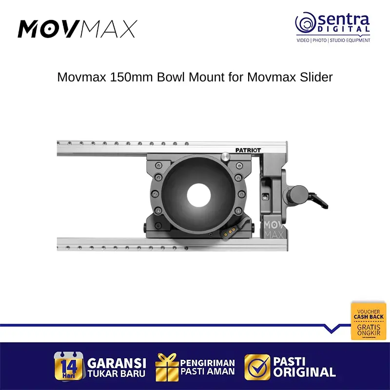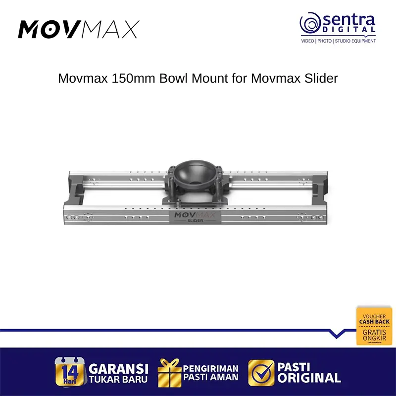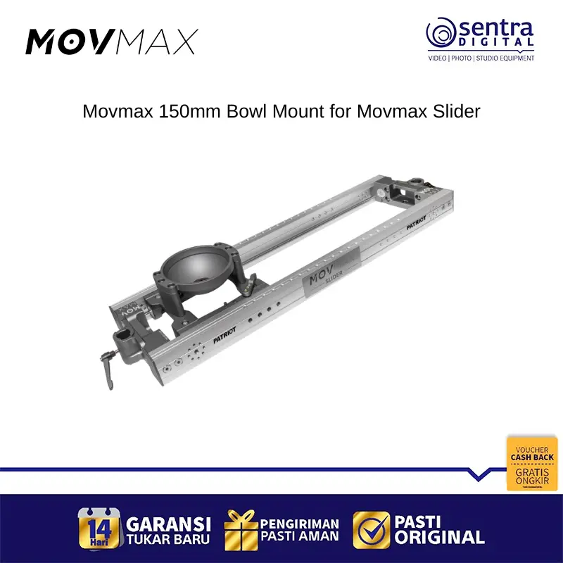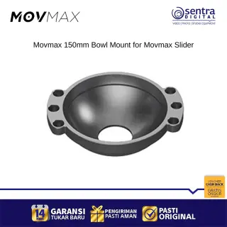 150mm Bowl Mount ;dari ;MOVMAX ;adalah komponen modular yang memungkinkan Anda menggunakan Slider MOVMAX dengan kepala tripod 150mm. Komponen logam yang tahan lama ini terpasang pada rangka slider menggunakan dudukan tegak slider. Komponen ini kompatibel dengan semua panjang Slider.