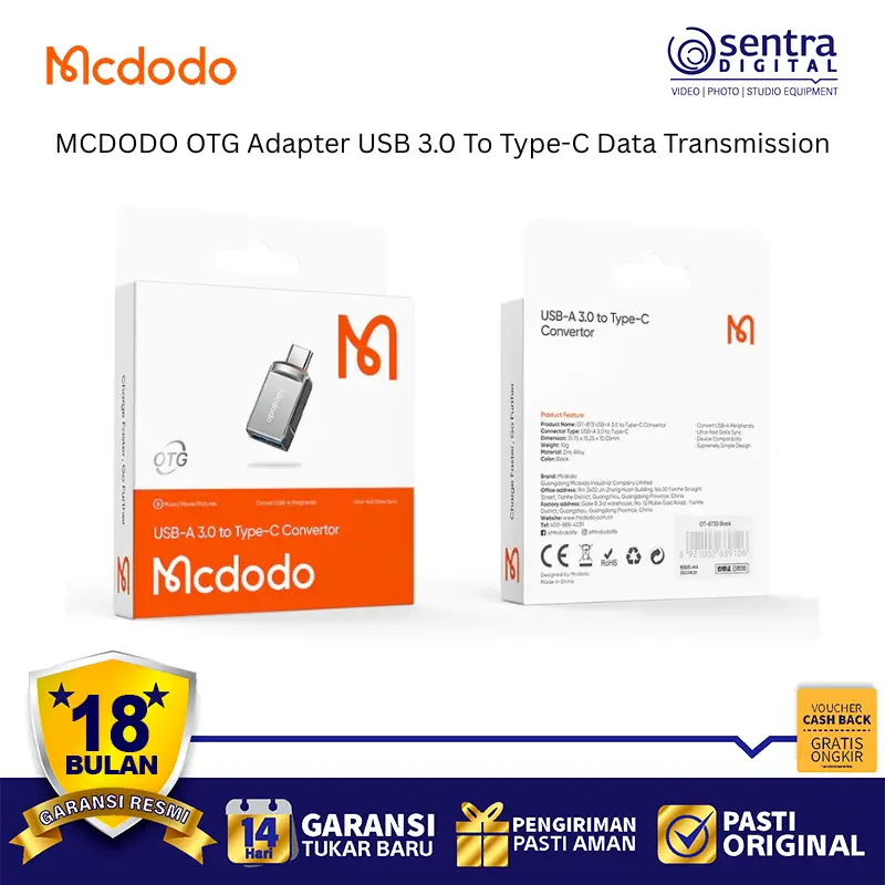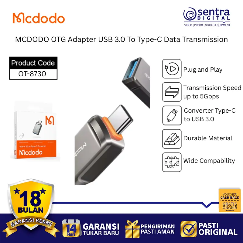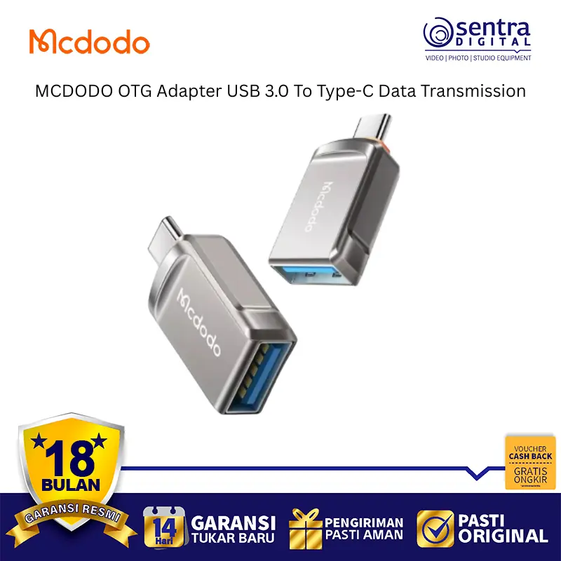 MCDODO OTG Adapter USB 3.0 To Type-C Data Transmission OT-8730 adalah konverter mini dan portabel yang berfungsi untuk menghubungkan berbagai perangkat USB standar (USB-A 3.0) seperti flash disk, mouse, keyboard, atau gamepad ke smartphone, tablet, atau laptop yang menggunakan port Type-C.