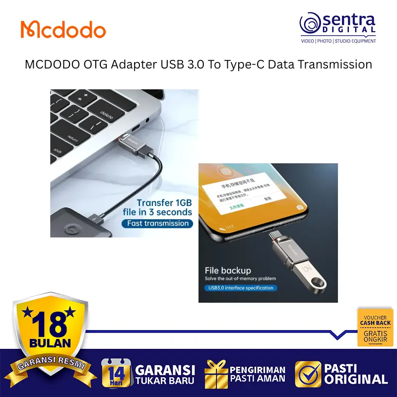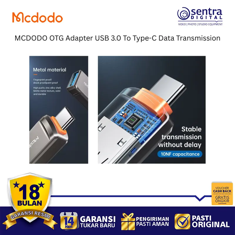 Adapter OTG (On-The-Go) ini dirancang untuk fungsi ganda: transfer data kecepatan tinggi dan pengisian daya. Mengadopsi standar USB 3.0, ia menawarkan kecepatan transmisi data yang sangat cepat hingga 5 Gbps (dengan kecepatan terukur hingga 400MB/s), memungkinkan transfer file besar 1GB hanya dalam waktu sekitar 3 detik. Selain itu, adaptor ini mendukung fast charging hingga 3A. Desainnya menggunakan cangkang paduan seng (Zinc Alloy) yang tahan lama, anti-sidik jari, dan berukuran sangat ringkas (mini compact) sehingga mudah dibawa dan digunakan untuk memperluas fungsionalitas perangkat Type-C.