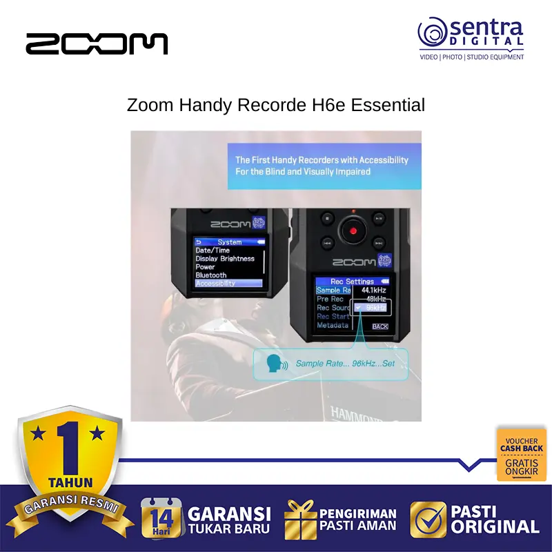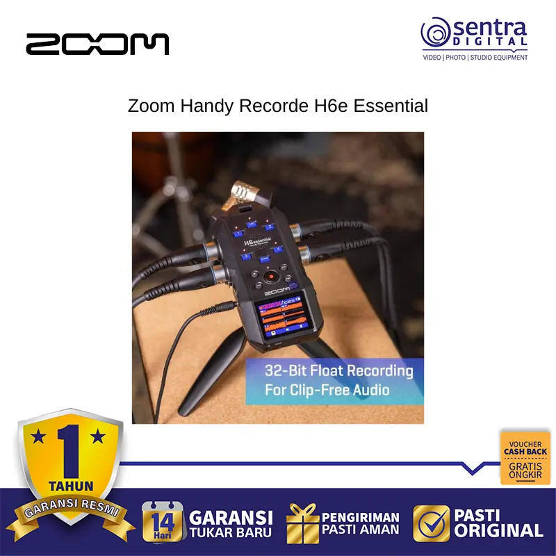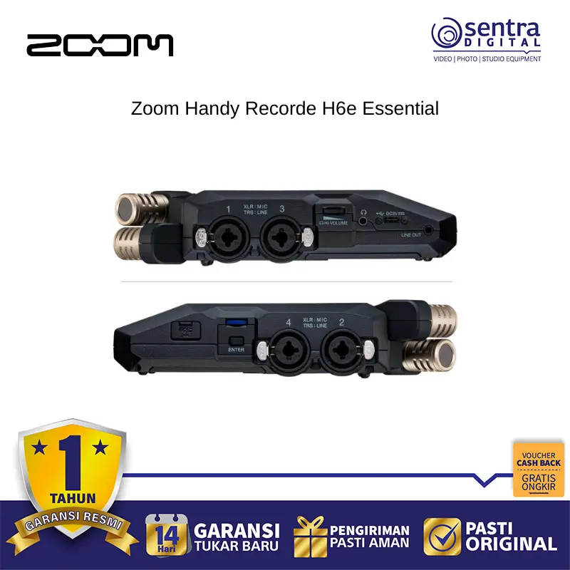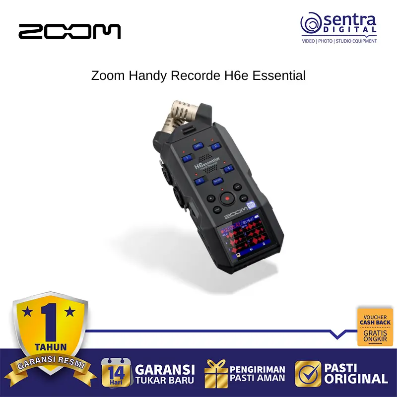 Zoom H6essential Handy Recorder adalah perekam audio handheld unggulan yang menawarkan enam track rekaman audio berkualitas tinggi dan bebas distorsi berkat teknologi 32-bit float dan Dual A/D Converters. Fitur ini memungkinkan pengguna merekam tanpa perlu khawatir mengatur level secara manual (clip-free recording).