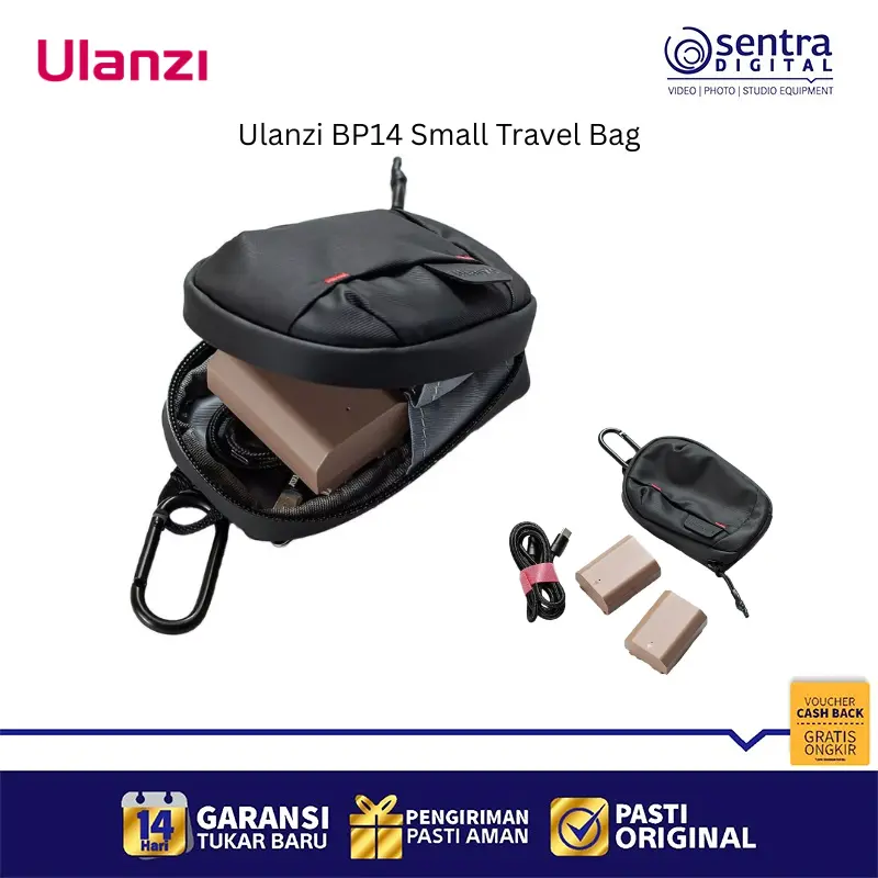 Bawalah hanya barang-barang yang Anda butuhkan dalam Tas Kecil BP14 dari Ulanzi . Tas ringkas ini ideal untuk menyimpan barang-barang kecil dan aksesori agar tetap rapi saat dibawa.