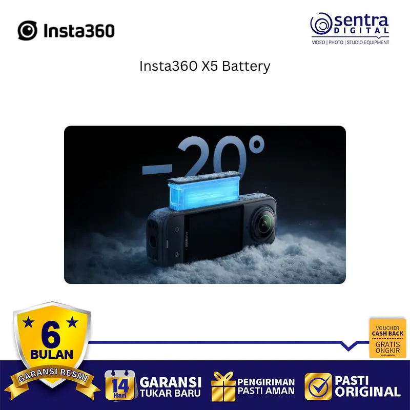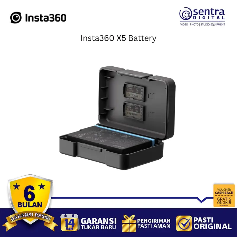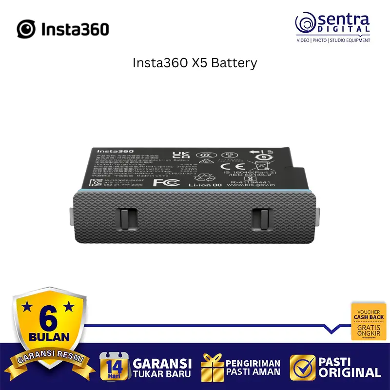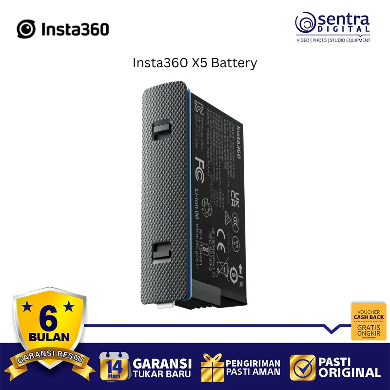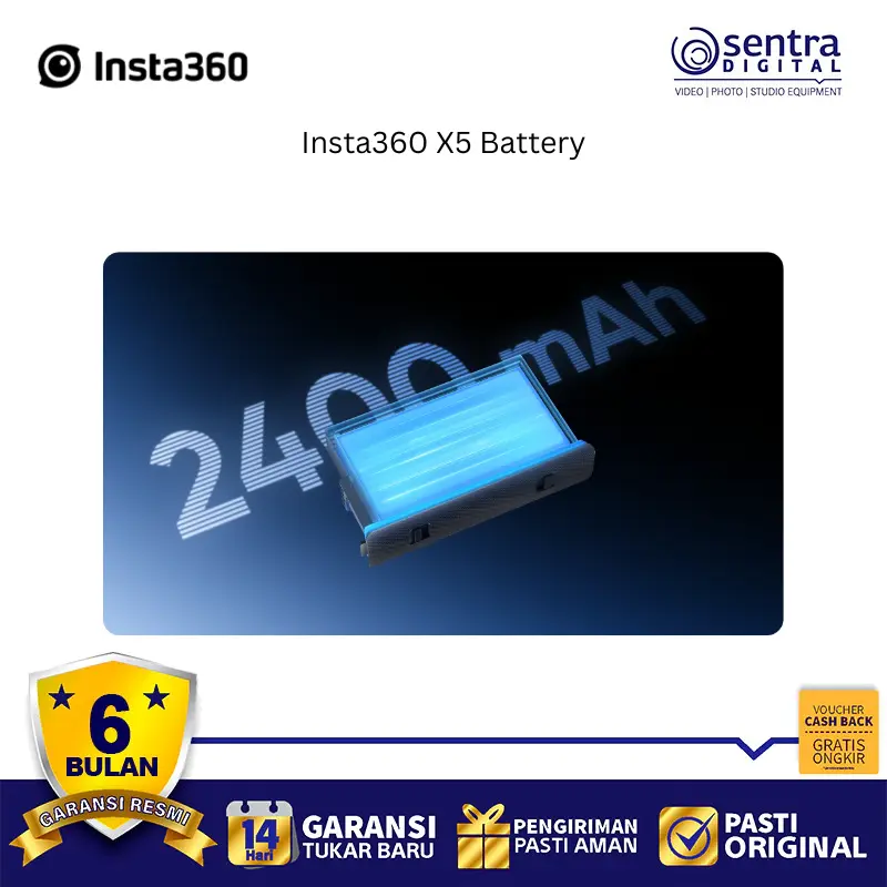 Baterai Insta360 X5 adalah baterai berkapasitas besar 2400mAh yang dirancang khusus untuk kamera aksi Insta360 X5, menawarkan peningkatan signifikan dalam durasi perekaman dibandingkan model sebelumnya. Baterai ini mampu memberikan waktu perekaman hingga sekitar 208 menit dalam mode 5.7k @24fps.