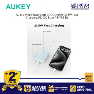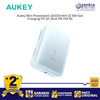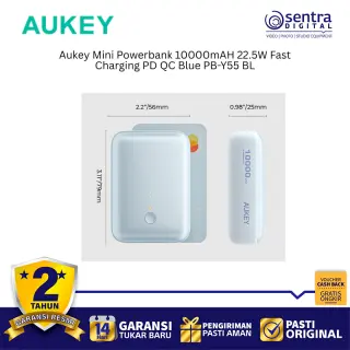 Aukey Mini Powerbank 10000mAH 22.5W Fast Charging PD QC Blue PB-Y55 BL
