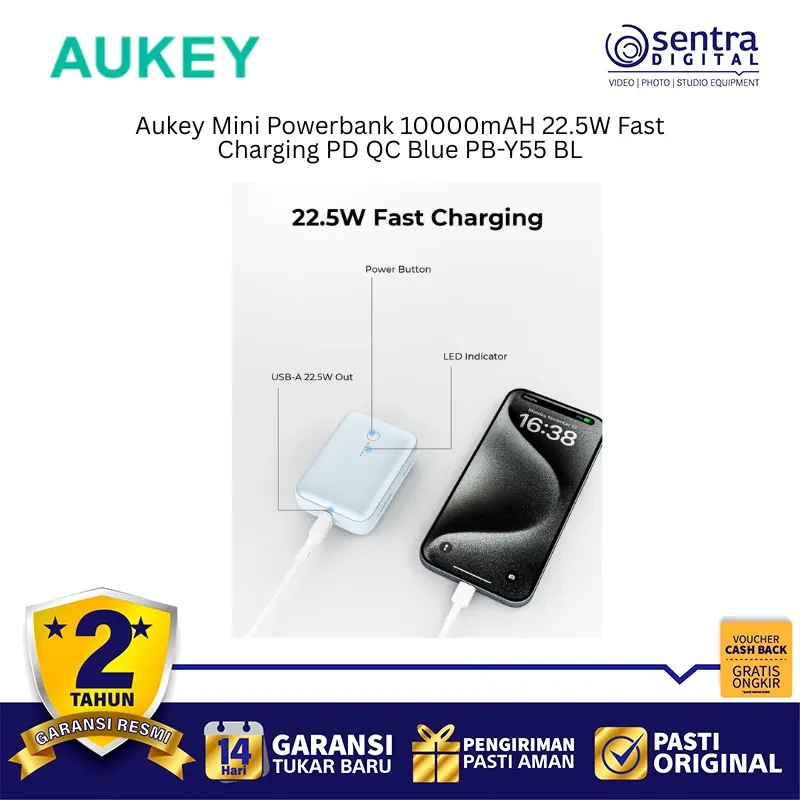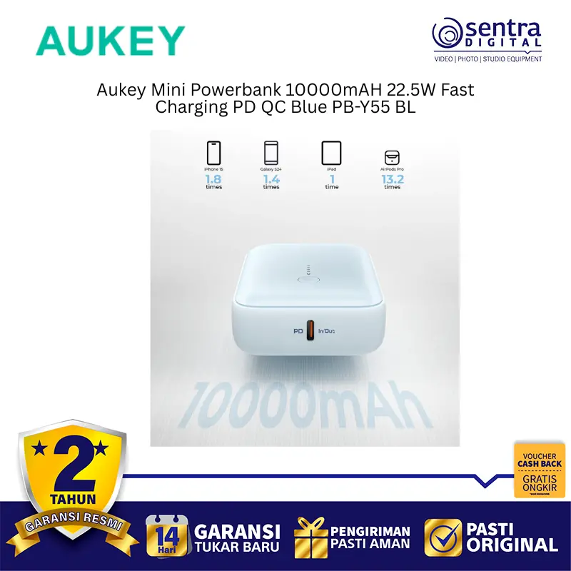 Aukey Mini Powerbank PB-Y55 BL berkapasitas 10000mAh hadir dengan fitur fast charging 22.5W yang mendukung Power Delivery (PD) dan Quick Charge (QC), ideal untuk pengisian cepat smartphone dan perangkat USB-C. Desainnya yang kompak dan warna biru elegan menjadikannya pilihan tepat untuk pengguna aktif yang membutuhkan daya tahan tinggi dan portabilitas maksimal.