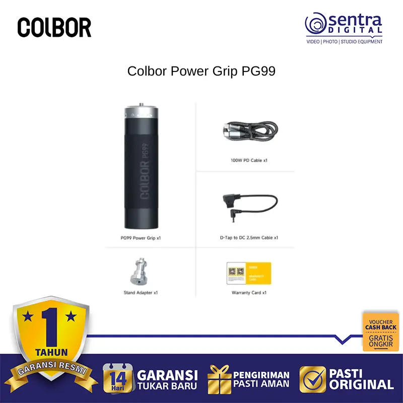 Colbor Power Grip PG99 adalah battery grip isi ulang dengan kapasitas 98Wh (6600mAh) yang dirancang untuk memperpanjang waktu pengoperasian lampu video LED seri COLBOR CL60/CL100X dan W100/W60. Grip bertekstur kulit yang ringan (605g) ini nyaman digenggam dan dilengkapi dengan port D-Tap dan Type-C yang memungkinkan Anda untuk memberi daya pada lampu dan juga perangkat elektronik lain seperti kamera atau ponsel.