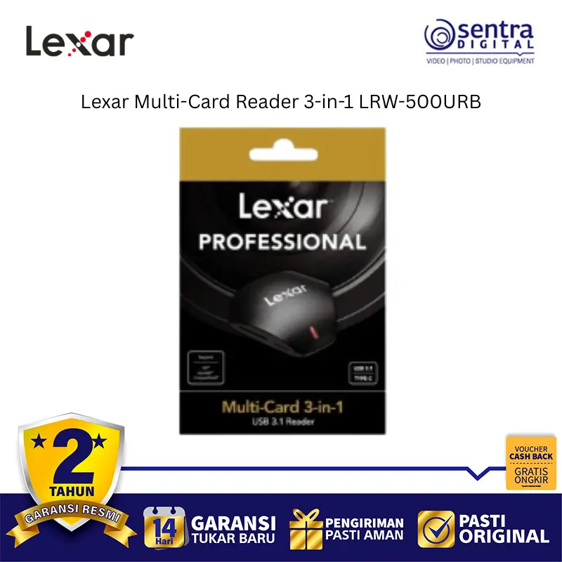 Pembaca USB 3.1 3-in-1 Multi-Kartu Profesional Lexar adalah cara praktis untuk mentransfer berkas dengan cepat antara beberapa kartu dan komputer Anda. Pembaca multi-kartu ini memanfaatkan teknologi USB 3.1 untuk menghadirkan transfer berkas berkecepatan tinggi hingga 312MB/dtk untuk kartu SD™ dan microSD™, serta hingga 160MB/dtk untuk  kartu CompactFlash®, yang secara signifikan meningkatkan alur kerja Anda .