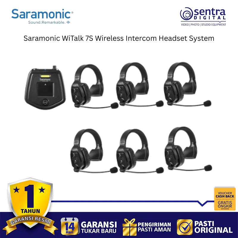 Saramonic WiTalk 7S adalah sistem interkom headset nirkabel full-duplex profesional yang dirancang untuk komunikasi tim hingga tujuh orang, sangat ideal untuk produksi film, televisi, panggung, atau acara olahraga. Sistem ini memungkinkan komunikasi dua arah secara simultan (full-duplex) dan bebas genggam bagi semua pengguna, meningkatkan efisiensi dan pergerakan di lokasi.