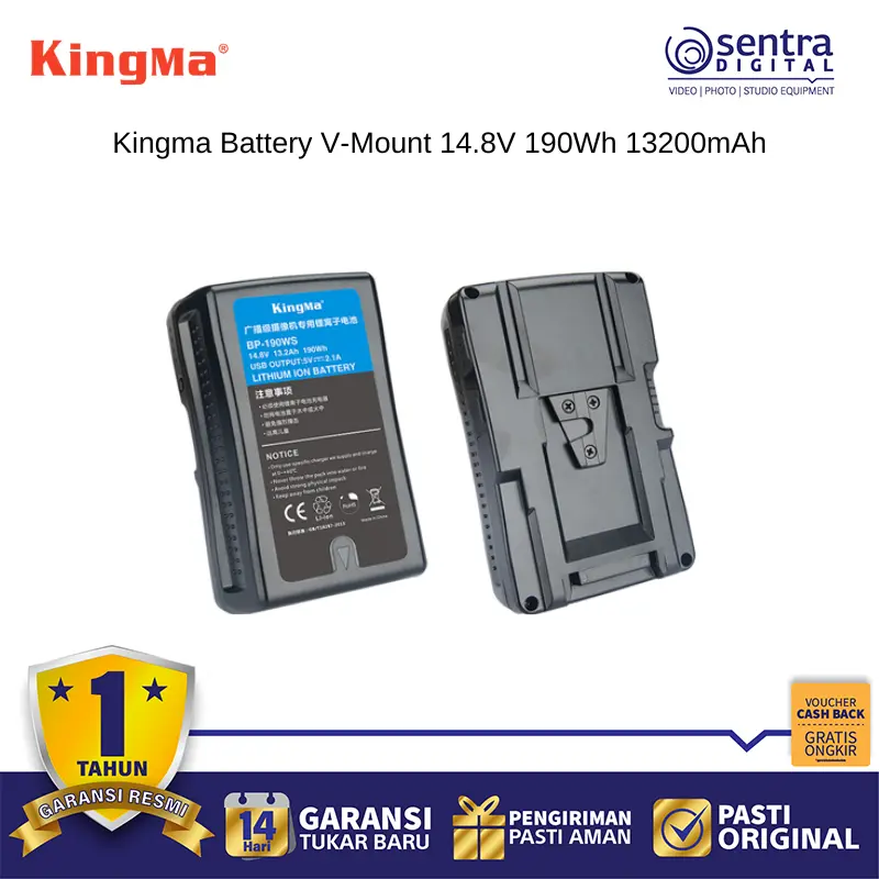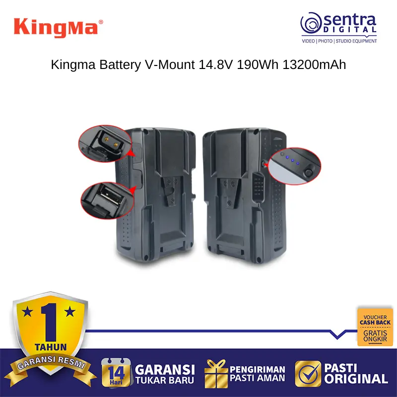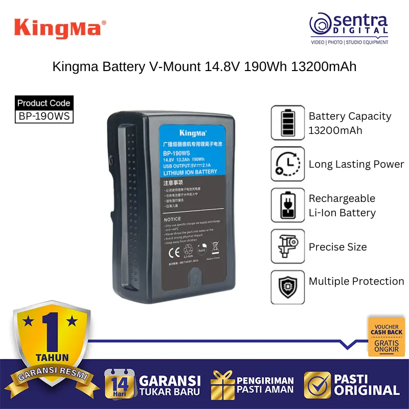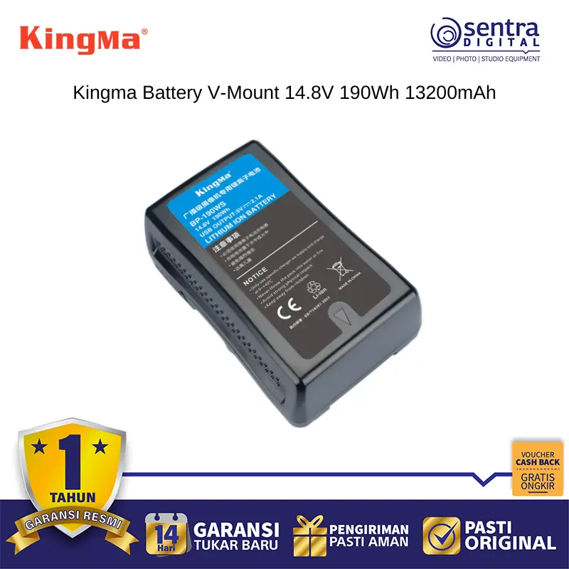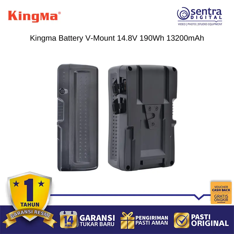 • Kingma Baterai V-Mount berkapasitas super besar 190WS 13200mAh/14.8V.