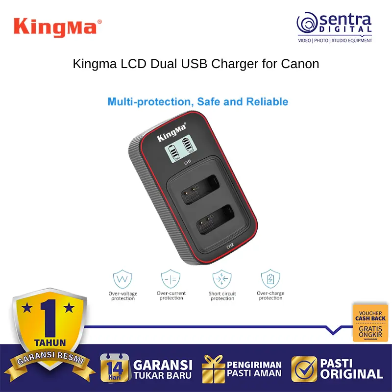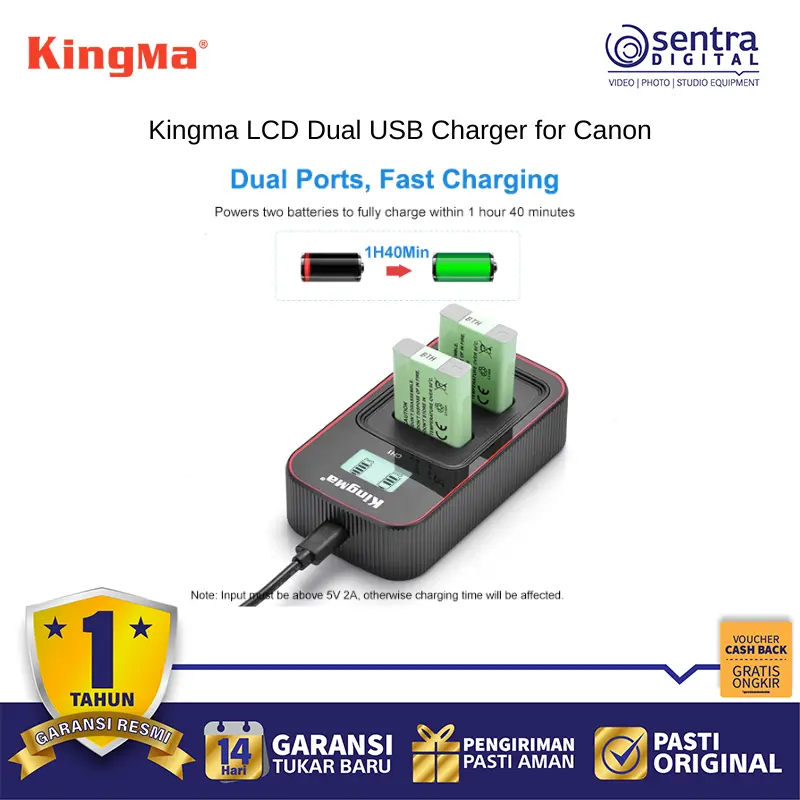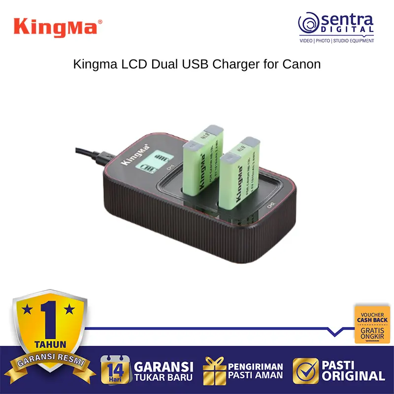 Pengisi daya Kingma LCD Dual USB untuk Canon NB-13L (BM058-NB13L) adalah perangkat yang dirancang untuk mengisi daya dua baterai Canon NB-13L secara simultan. Alat ini dilengkapi dengan layar LCD yang menampilkan status pengisian daya, termasuk persentase atau tingkat daya yang terisi untuk setiap baterai, dan biasanya juga menunjukkan tegangan pengisian. Sebagai pengisi daya USB ganda, ia menawarkan fleksibilitas untuk dihubungkan ke berbagai sumber daya USB, seperti bank daya, adaptor dinding USB, atau komputer, menjadikannya pilihan yang portabel dan serbaguna untuk bepergian.