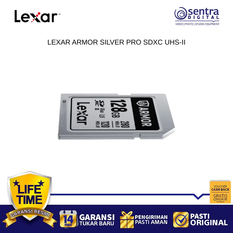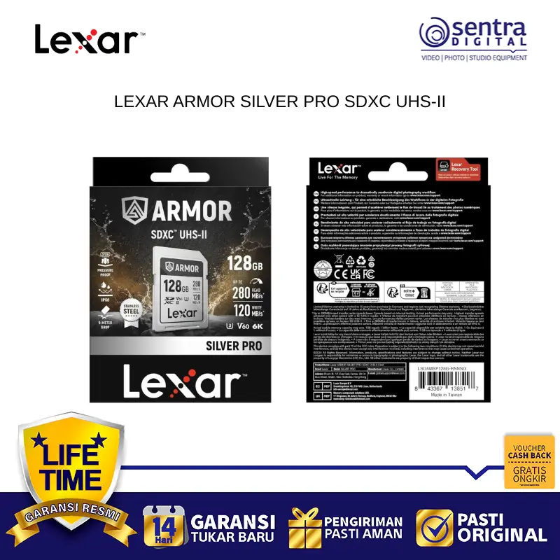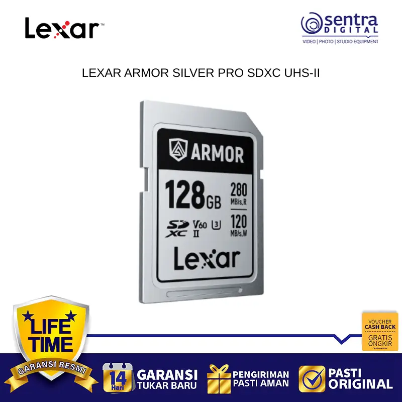 Lexar Armor Silver Pro SDXC UHS-II 128GB adalah kartu memori yang dirancang secara ekstrem untuk para profesional, menonjolkan cangkang luar yang terbuat dari baja tahan karat, menjadikannya 37 kali lebih kuat dari kartu SD standar dan sangat tahan terhadap tekanan hingga 370 Newton. Kartu ini memiliki sertifikasi IP68 untuk ketahanan penuh terhadap debu, air, dan bahkan tahan benturan hingga 5 meter, serta dirancang tanpa sakelar proteksi tulis yang rentan patah dan menggunakan ukiran laser agar informasi tidak hilang. Dari sisi performa, ia mendukung standar UHS-II dengan kecepatan baca super cepat hingga 280 MB/s dan kecepatan tulis hingga 120MB/s (dengan rating kelas kecepatan V60), menjadikannya ideal untuk perekaman video beresolusi tinggi hingga 6K dan pengambilan foto burst dengan cepat. Singkatnya, ini adalah kartu memori berkecepatan tinggi dan berkapasitas 128GB yang menawarkan daya tahan ekstrem untuk penggunaan di lingkungan profesional yang keras.