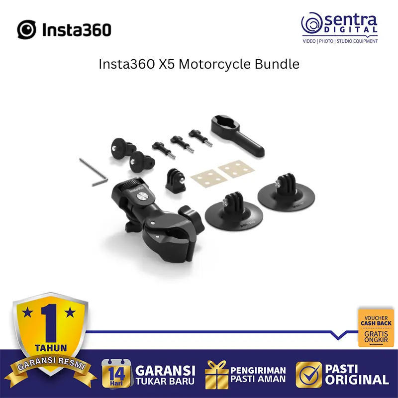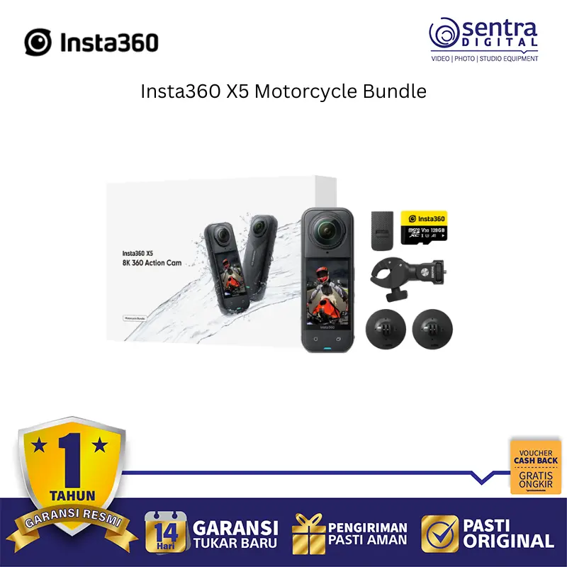 Insta360 X5 Motorcycle Bundle adalah paket lengkap yang dirancang khusus untuk para pengendara motor, menggabungkan kamera aksi 360 derajat seri Insta360 (seperti X4 atau X3) dengan serangkaian aksesori pemasangan yang kokoh.