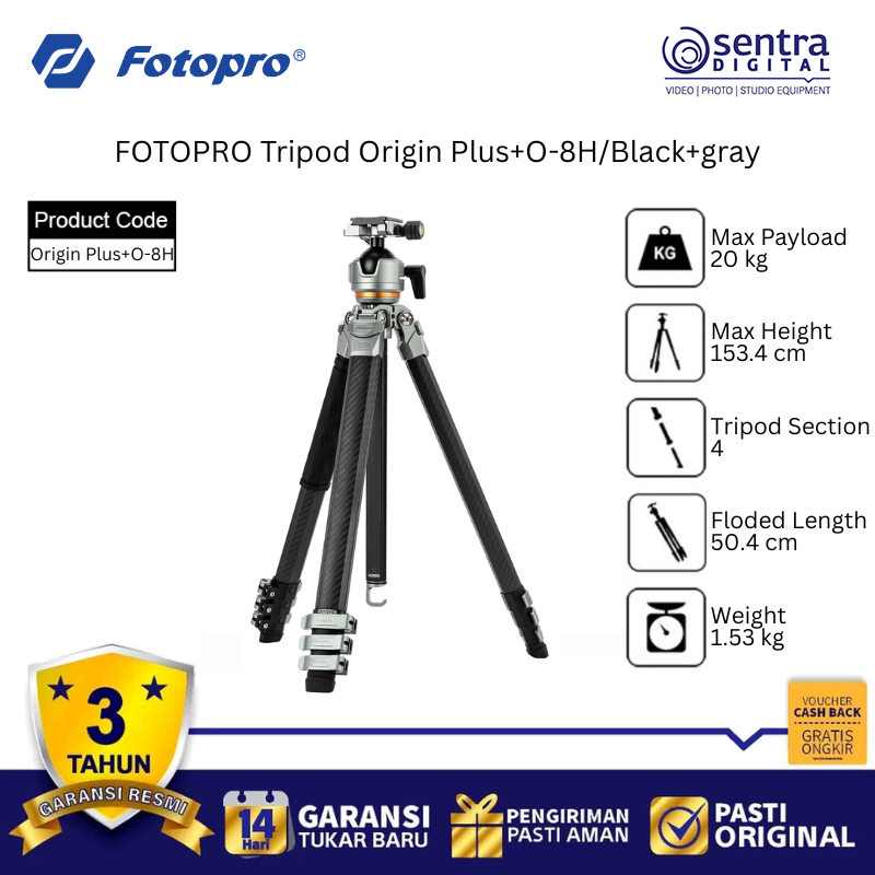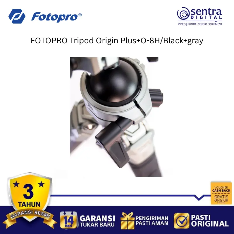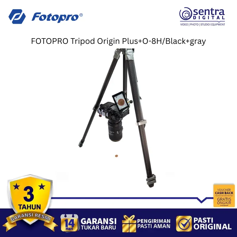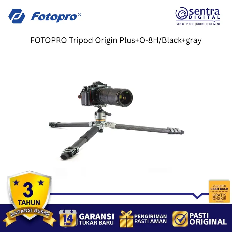 Fotopro Tripod Origin Plus +O-8H/ Black+Gray adalah tripod kamera profesional yang menggabungkan desain estetis dengan performa tangguh untuk fotografer lanskap dan perjalanan. Dibuat dengan material berkualitas tinggi, tripod ini menawarkan stabilitas maksimal namun tetap ringan untuk dibawa bepergian. Dilengkapi dengan kepala bola O-8H yang presisi, pengguna dapat melakukan pergerakan kamera yang halus dan penguncian yang kuat untuk berbagai sudut pengambilan gambar. Sistem penguncian kaki yang cepat memudahkan pengaturan tinggi tripod dalam waktu singkat di medan yang sulit sekalipun. Dengan balutan warna hitam dan abu-abu yang elegan, produk ini juga sering menyertakan fitur tambahan seperti kolom tengah yang dapat dilepas atau dibalik untuk fotografi makro tingkat rendah.