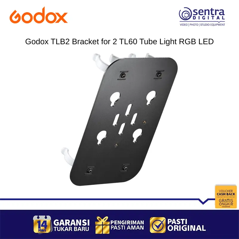 Godox TLB2 Bracket adalah aksesori pemasangan khusus yang dirancang untuk menahan dua lampu tabung LED seri TL, seperti TL30, TL60, atau TL120 secara berdampingan pada satu dudukan lampu. Alat ini memungkinkan kreator untuk menggandakan output cahaya atau menciptakan sumber cahaya yang lebih luas dan merata dengan pengaturan yang efisien. Dilengkapi dengan desain leher angsa (gooseneck) yang fleksibel serta sambungan ball head yang dapat berputar, bracket ini memberikan kebebasan penuh dalam mengatur sudut dan posisi lampu sesuai kebutuhan pencahayaan. Materialnya yang kokoh memastikan lampu terpasang dengan stabil dan aman, sementara receiver standar 5/8 inci di bagian bawahnya menjamin kompatibilitas luas dengan berbagai jenis light stand di studio maupun lokasi syuting.