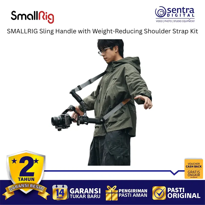 SmallRig 4383B adalah paket aksesoris ergonomis yang dirancang khusus untuk pengguna gimbal DJI seri RS guna memberikan kenyamanan maksimal selama sesi pengambilan gambar yang panjang. Kit ini terdiri dari Sling Handle yang dapat disesuaikan dan Shoulder Strap empuk yang berfungsi mendistribusikan beban perangkat secara merata ke bahu dan punggung, sehingga mengurangi kelelahan tangan secara signifikan. Pegangannya dipasang menggunakan dudukan rel NATO yang kokoh dan mendukung penyesuaian sudut secara fleksibel untuk mempermudah transisi ke mode pengambilan gambar sudut rendah atau underslung. Selain meningkatkan kontrol stabilitas, alat ini juga dilengkapi dengan berbagai titik pemasangan seperti lubang sekrup 1/4-20 inci dan cold shoe untuk memasang monitor, mikrofon, atau lengan artikulasi tambahan secara praktis.