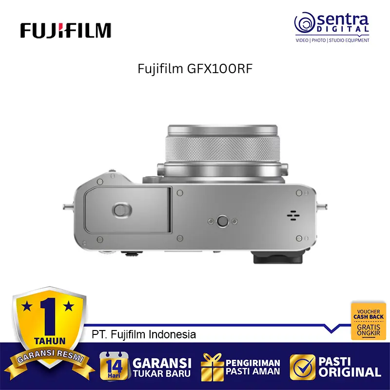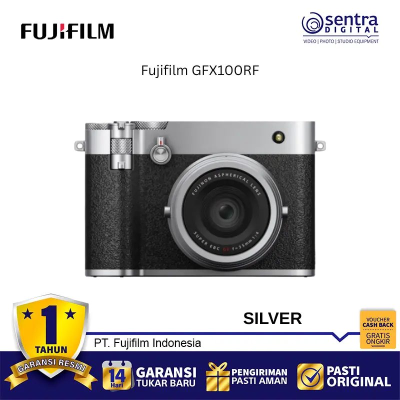 Fujifilm GFX100RF adalah kamera format medium mirrorless yang mengusung desain gaya rangefinder yang ikonik dan lebih ramping dibandingkan model standar di kelasnya. Kamera ini dibekali sensor resolusi tinggi 102 megapiksel yang mampu menangkap detail luar biasa dengan rentang dinamis yang sangat luas khas seri GFX. Meskipun memiliki bodi yang lebih kompak, GFX100RF tetap mengintegrasikan sistem stabilisasi gambar dalam bodi yang canggih untuk memastikan hasil foto tetap tajam saat pemotretan tanpa tripod. Dengan jendela bidik optik-elektronik hibrida yang unik, kamera ini memberikan pengalaman memotret yang lebih klasik namun tetap didukung oleh teknologi autofokus deteksi subjek terbaru yang cepat dan akurat. Kamera ini menjadi pilihan ideal bagi fotografer dokumenter, perjalanan, atau jalanan yang menginginkan kualitas gambar tertinggi dalam bentuk perangkat yang lebih portabel dan diskret.