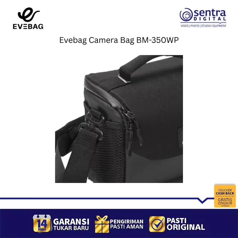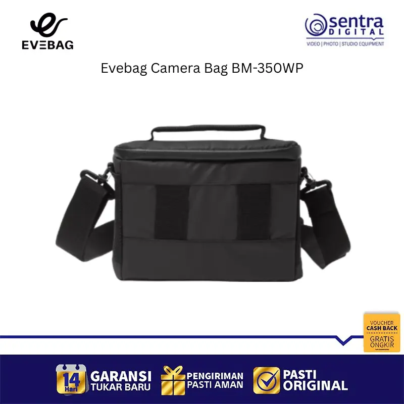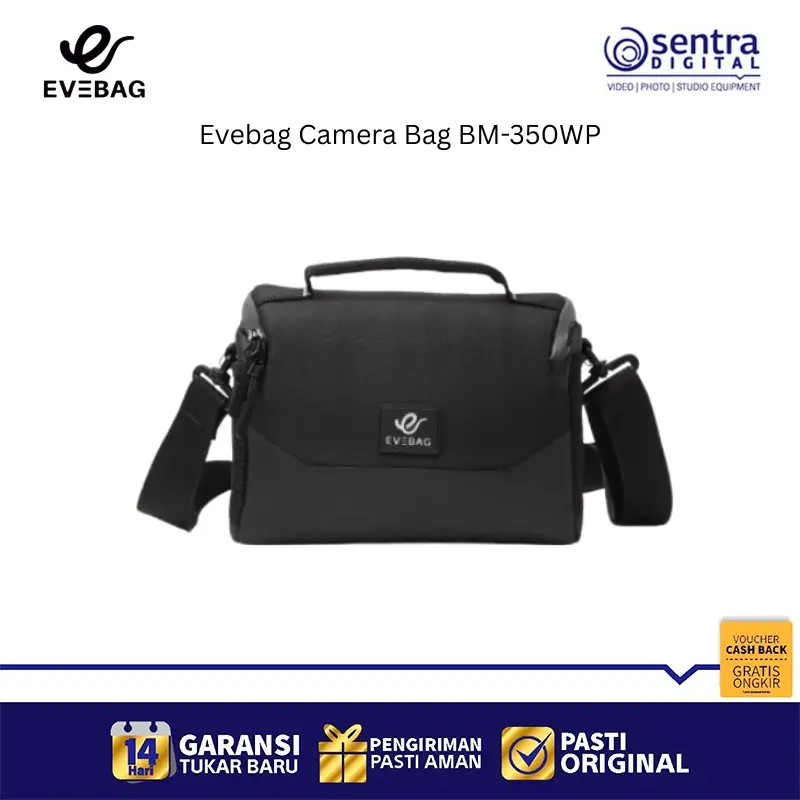 Evebag Camera Bag BM-350WP adalah tas kamera jenis sling bag yang dirancang khusus dengan material Cordura anti air dan resleting waterproof untuk melindungi perangkat dari cuaca buruk. Tas ini memiliki desain ringkas dengan dimensi luar sekitar 22 x 10 x 15 cm, menjadikannya pilihan ideal untuk membawa kamera mirrorless atau DSLR kecil beserta satu lensa tambahan dengan aman berkat lapisan busa pelindung setebal 10mm. Bagian interiornya dilapisi kain beludru lembut yang menjaga peralatan dari goresan, sementara bagian luar dilengkapi dengan dudukan kaki karet ganda untuk menjaga stabilitas saat diletakkan. Selain fungsional, tas ini juga mengutamakan kenyamanan pengguna dengan bantalan bahu yang empuk serta tersedia dalam beberapa varian warna gelap yang elegan untuk mendukung aktivitas fotografi harian maupun perjalanan jauh.