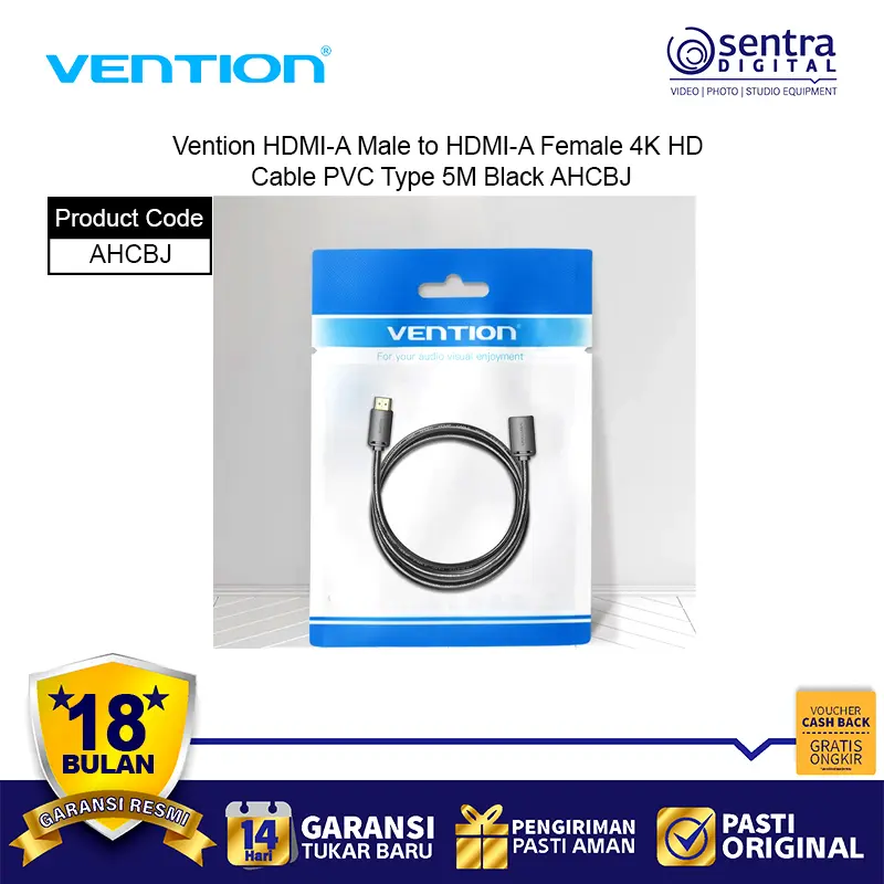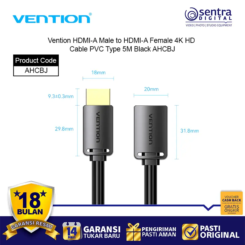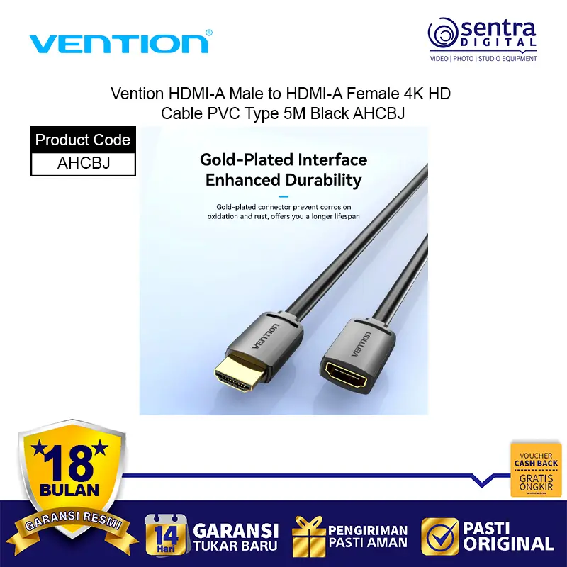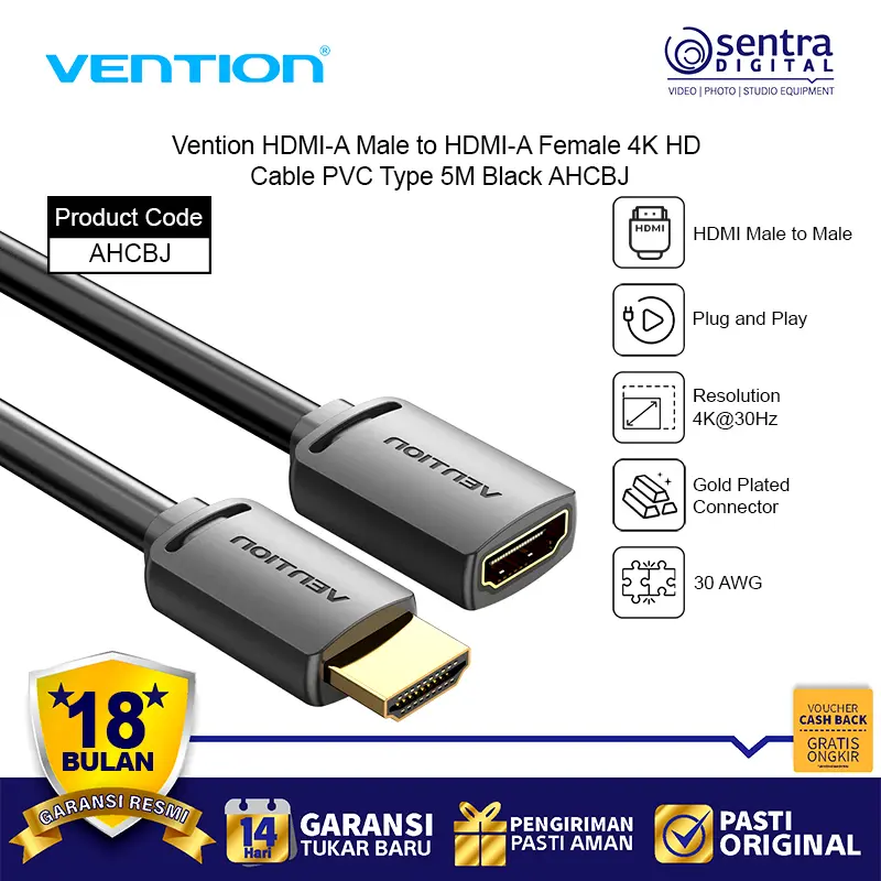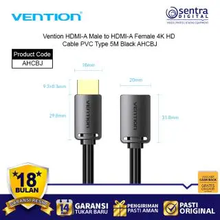 Vention HDMI-A Male to HDMI-A Female 4K HD Cable 5M adalah kabel ekstensi HDMI berkualitas tinggi yang mendukung resolusi hingga 4K Ultra HD. Dengan panjang 5 meter, kabel ini ideal untuk memperpanjang koneksi HDMI dari perangkat seperti laptop, PC, TV, monitor, dan proyektor. Terbuat dari bahan PVC hitam yang kuat dan fleksibel, kabel ini memastikan transmisi sinyal stabil tanpa gangguan. Cocok untuk home theater, presentasi kantor, maupun gaming setup.