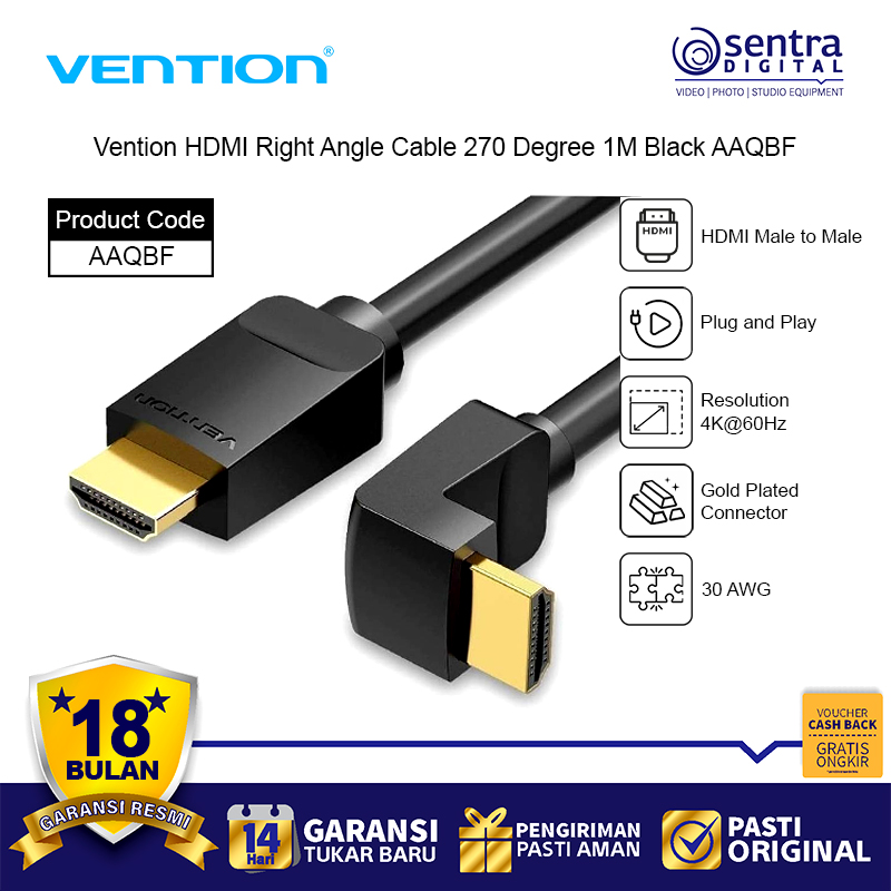 Vention HDMI Right Angle Cable 270° 1M adalah kabel HDMI berkualitas tinggi dengan desain sudut 270 derajat yang memudahkan instalasi di ruang sempit. Kabel ini mendukung resolusi hingga 4K Ultra HD, memberikan kualitas gambar tajam dan stabil. Dengan panjang 1 meter, kabel ini ideal untuk menghubungkan perangkat seperti TV, monitor, laptop, PC, dan proyektor tanpa kabel berlebihan. Terbuat dari bahan PVC hitam yang kuat dan fleksibel, kabel ini tahan lama dan praktis digunakan untuk home theater maupun setup gaming.