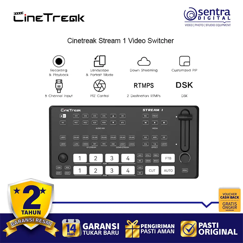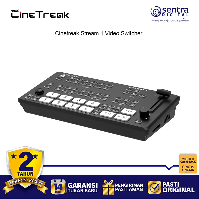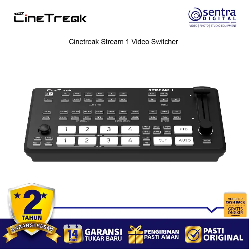 • Cinetreak Stream 1 menawarkan switching video yang cepat dan stabil dengan beberapa input untuk kebutuhan live streaming.