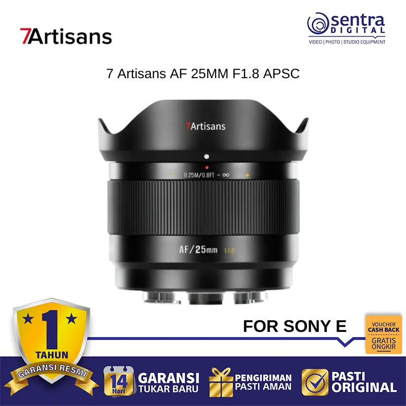 7Artisans AF Series F1.8 adalah jajaran lensa autofokus perdana dari 7Artisans yang dirancang khusus untuk kamera mirrorless APS-C dengan pilihan focal length 25mm, 35mm, dan 50mm untuk dudukan Fuji X serta Sony E. Lensa-lensa ini menawarkan aperture lebar f/1.8 yang sangat efektif untuk menciptakan efek bokeh halus dan performa maksimal dalam kondisi minim cahaya. Dibangun dengan bodi logam yang kokoh namun tetap ringan, seri ini dilengkapi dengan motor fokus STM yang menjamin penguncian fokus yang cepat, akurat, dan senyap baik untuk keperluan fotografi maupun videografi. Setiap lensa dalam seri ini mendukung fitur Eye-AF untuk pelacakan subjek yang presisi serta memiliki port USB-C terintegrasi untuk pembaruan firmware di masa mendatang guna memastikan kompatibilitas sistem yang optimal.